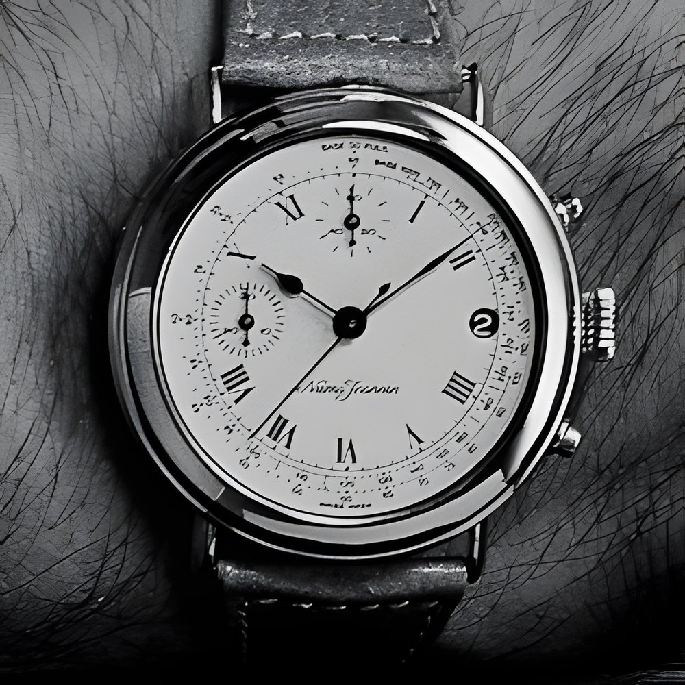 This chronograph is a faithful reproduction of a design originally introduced in the Thirties. It features a pink goidpiate case with double back cover and a mechanical movement with 30-minute and 12-hour timers, a small second hand at 9 o’clock, a date calendar at 3 o’clock, a tachymeter and a pulsometer. (NUMA JEANNIN)