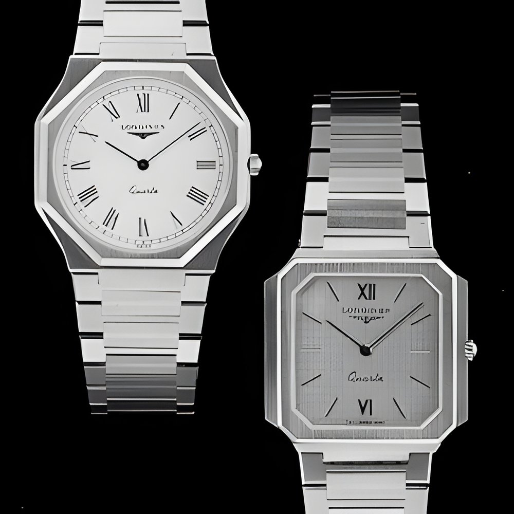 Two models from Longines’s “Symphonie” collection. A handsome match of gold and steel forming extra-thin cases housing proprietary quartz movements. Cases are shower-resistant and fitted with a sapphire crystal. Triple-safety clasps. (LONGINES “Symphonie”)