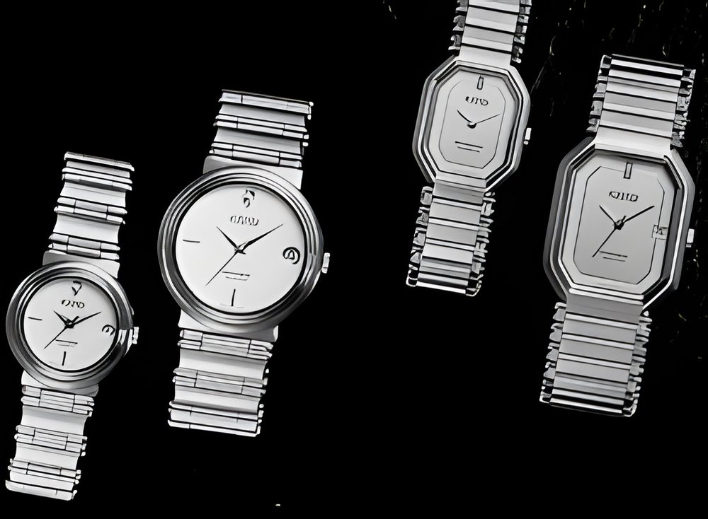 From Roamer’s “Stingray” collection, two pairs of stylishly sportsspirited wristwatches with superbly integrated, crisp, clean lines. All-steel or two-tone cases, water-resistant to 30 m, fitted with a mineral crystal. Very thin ETA quartz movements. (ROAMER “Stingray”)