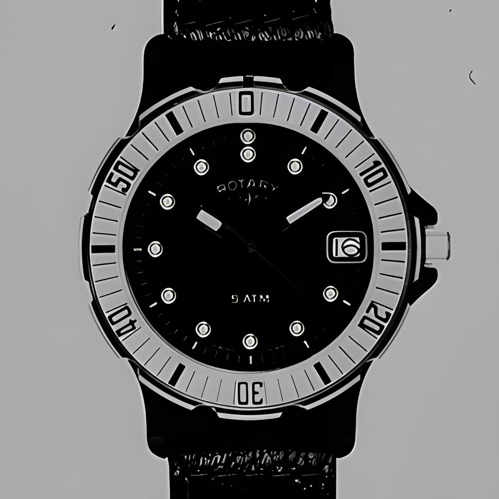 This stylish, sporty Rotary design, available in a choice of variants, can also be used as a diving watch; it features a knurled turning bezel and its case is water-resistant to 50 m. Very thin Swiss Made quartz movement. (ROTARY)