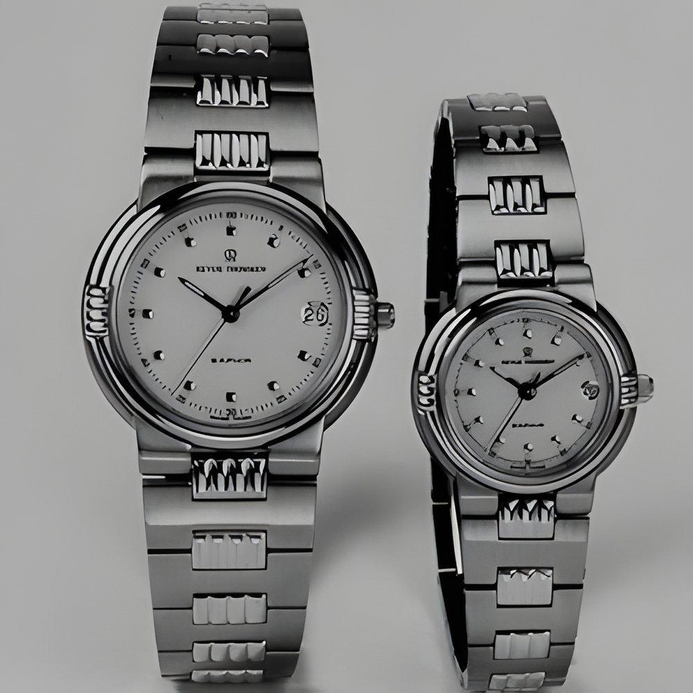 Revue Thommen designs for men and women, with smoothly integrated lines. Rounded bezels featuring a decor similar to the bracelet’s. Two-tone steel and 10-micron goldplate styling. Cases, with mineral crystal, are water-resistant to 30 m. ETA quartz calendar movements. (REVUE THOMMEN “Saphir”)