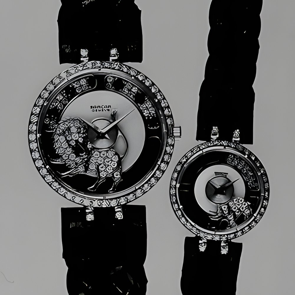 Alluring and mysterious, Sarcar’s “Magic Moon” watch line features models with diamonds set on mobiles that swing around with every movement of the wrist. This graciously feminine design has 8 diamonds, its masculine counterpart 130. The motif at the top can be shaped to the future buyer’s specifications : a heart, an emblem or even initials. (SARCAR “Magic Moon”)