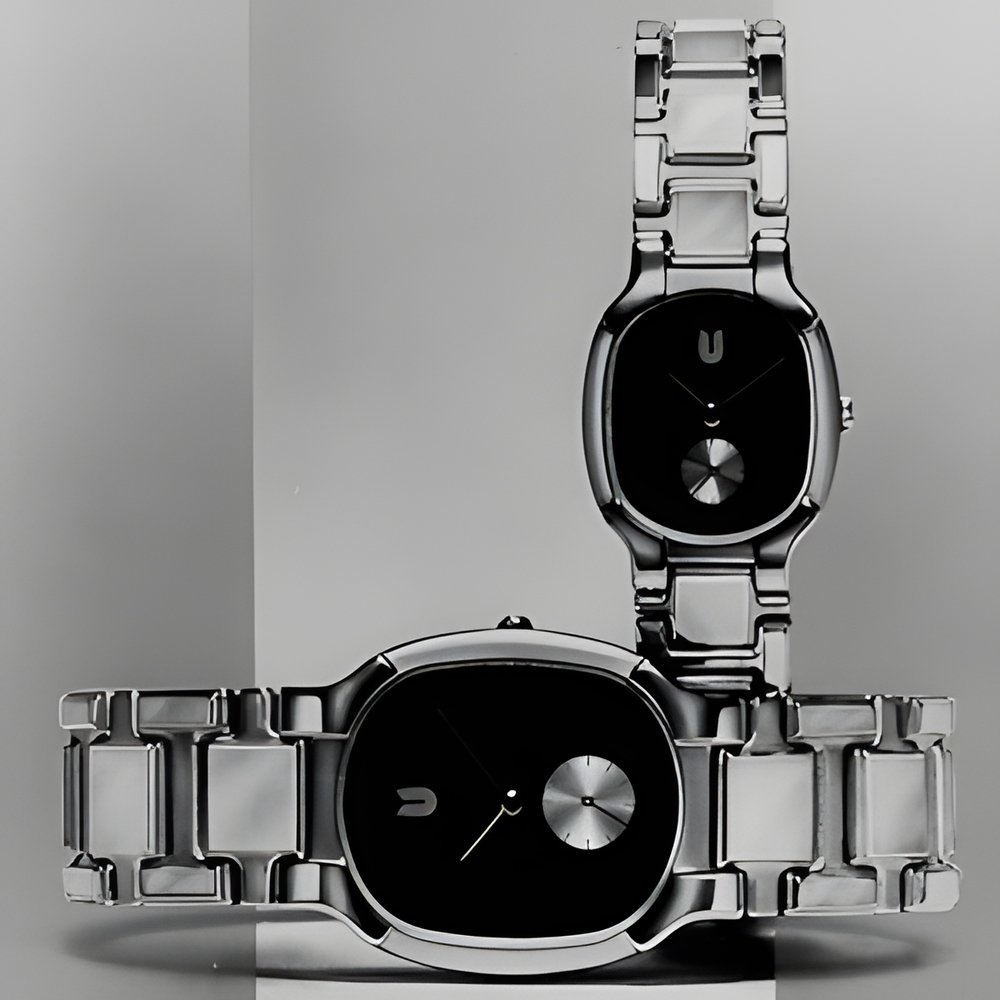 Universal Geneve introduces a new line called “Couture”. Featuring ultra-slim quartz movements, models come with 18K goldplated cases and bracelets and their dial features seconds hand on a gilt ground. Available in men’s and women’s sizes, water-resistant to 30 m. The “U” logo is a gilt applique standing out against a black, champagne or white background. (UNIVERSAL GENEVE “Couture”)