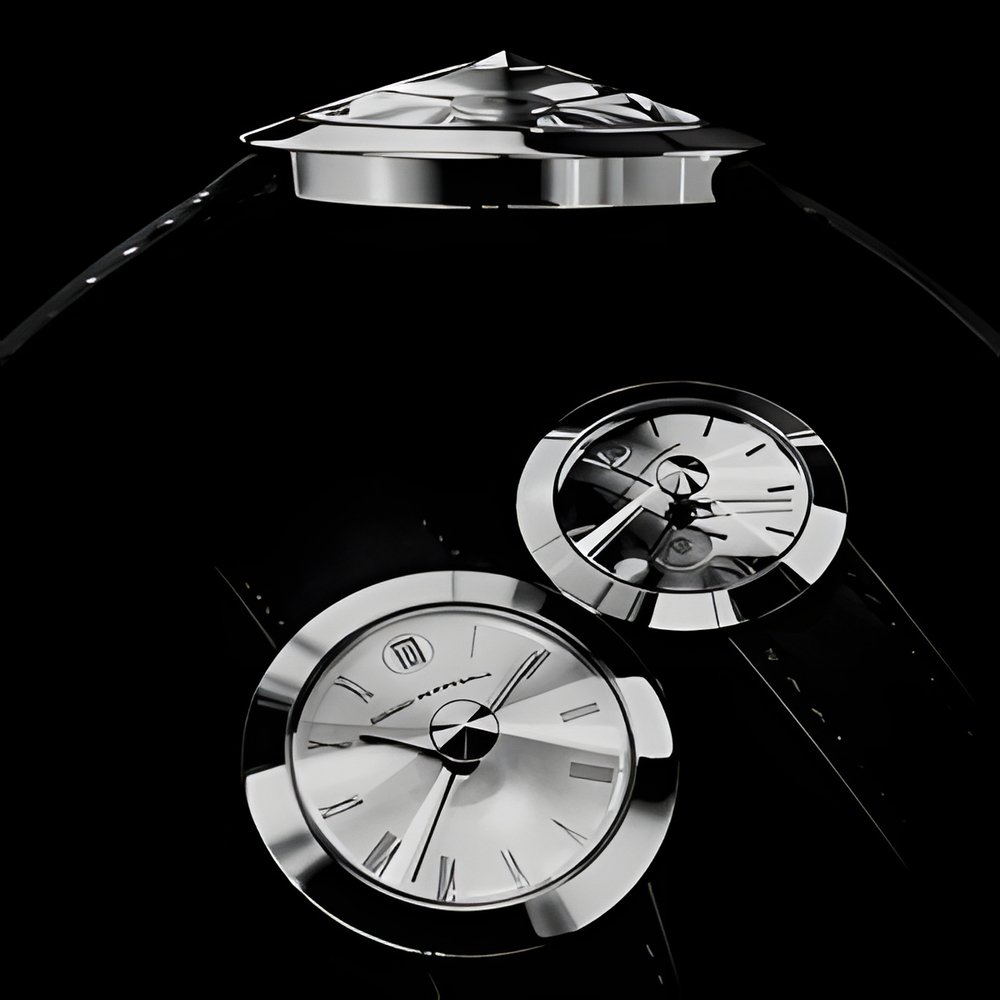 “Equation focale” was created for Girard-Perregaux by Italian designer Marcello Morandini. A smooth sapphire cone with gold or steel tip crowns this timepiece combining the most sophisticated electronic technology and horological micromechanics. Time with a strikingly unusual silhouette for men and women, in 18K gold, gold and steel or all steel. (GIRARD-PERREGAUX “Equation focale”)