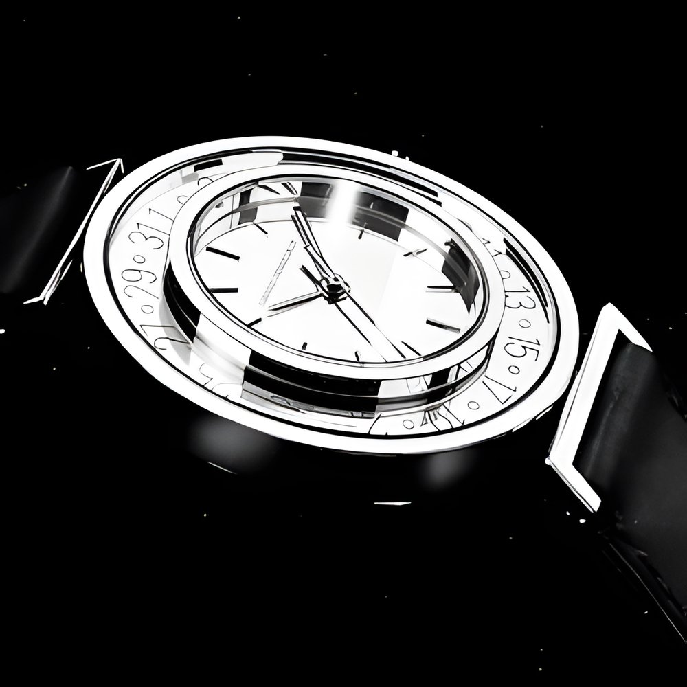 The Italian designer Marcello Morandini has successfully combined boldly innovative styling and advanced time technology in this “Equation intégrale” model created for Girard-Perregaux. This exclusive timepiece features a stepped dial for the hours, minutes and seconds over a circular calendar. Available in 18K gold, gold and steel and all steel. (GIRARD-PERRECAUX “Equation intégrale”)