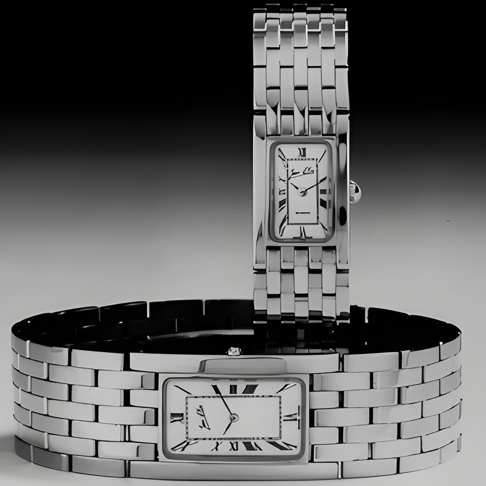 The purest expression of integrated watch styling. Called “Horizon” because of its sleek silhouette, this model’s bracelet, case and dial display absolute styling unity. Available in steel, two-tone finish or goldplate. (LE PHARE-JEAN D’EVE “Horizon”)