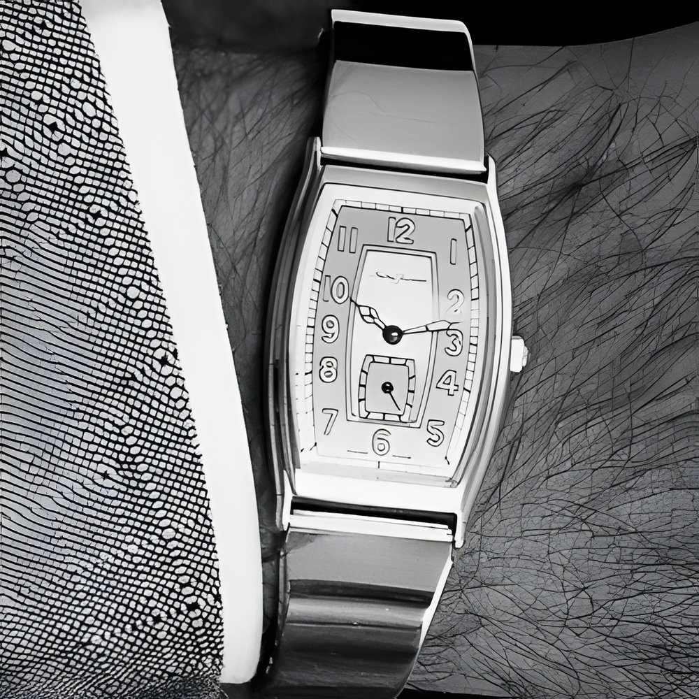 Called “curvex”, this model features a curving, wrist-hugging case. Both the dust-tight case and semi-rigid bracelet feature 925 silver 10-micron silverplate. Dial with 12 luminous figures and small second händ. A woman’s version is also available. (NUMA JEANNIN “Les Nostalgiques”)