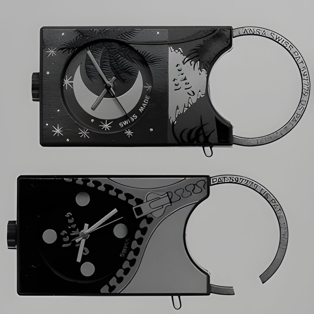 Clokies : fun watches that colour time brightly and gaily, designed to fit just about everywhere. They feature a quartz movement, an injected ABS case and decorative patterns and dials designed for the younger generations. They are also ideally suited for advertising messages of every description. (Aubry of Switzerland - LES CLOKIES)
