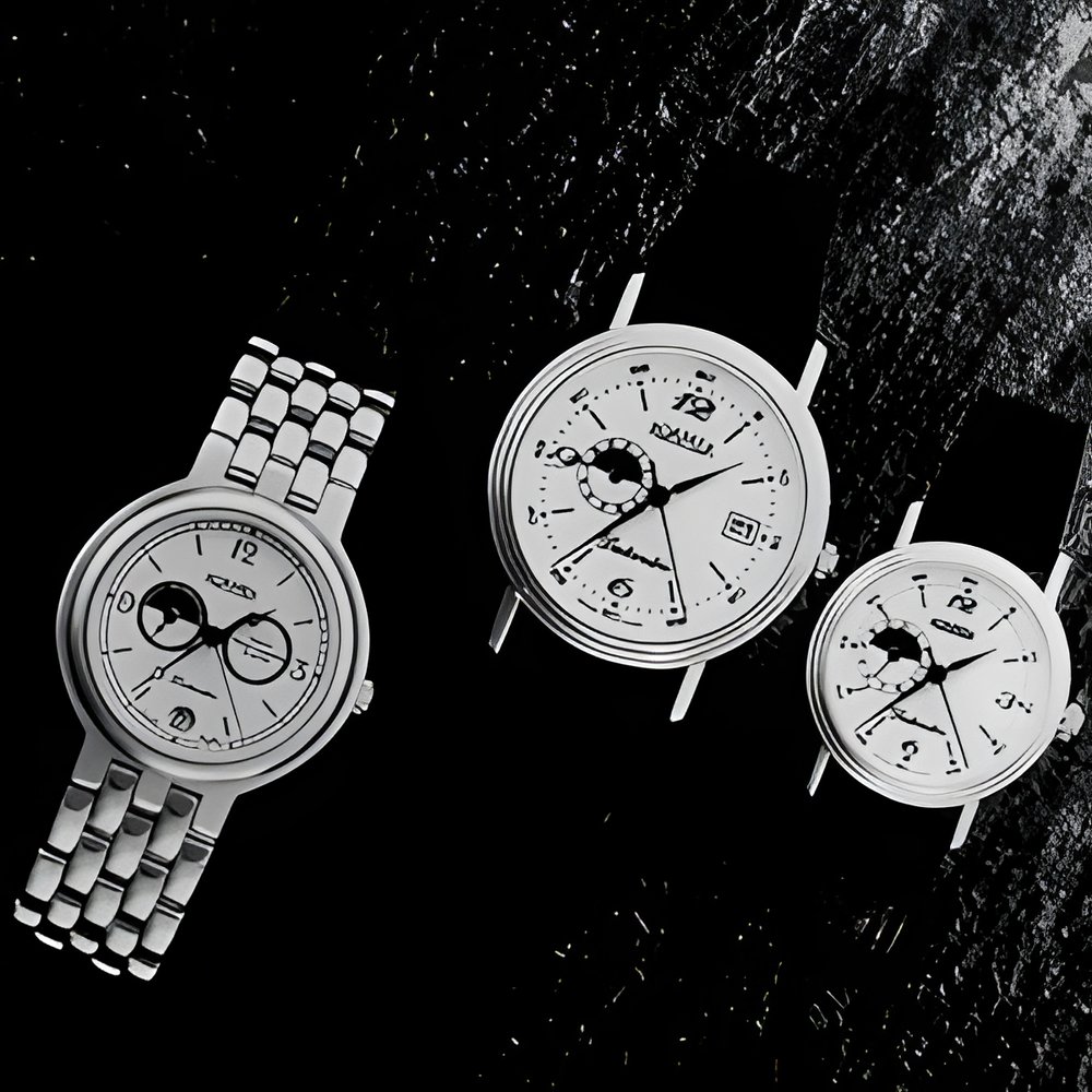 Models for both men and women from Roamers new, entirely Swiss Made “Spotlight” collection. 24-hour + night-and-day time displays, calendar, centre seconds. 5-micron goidplated water-resistant case. (ROAMER “Spotlight”)