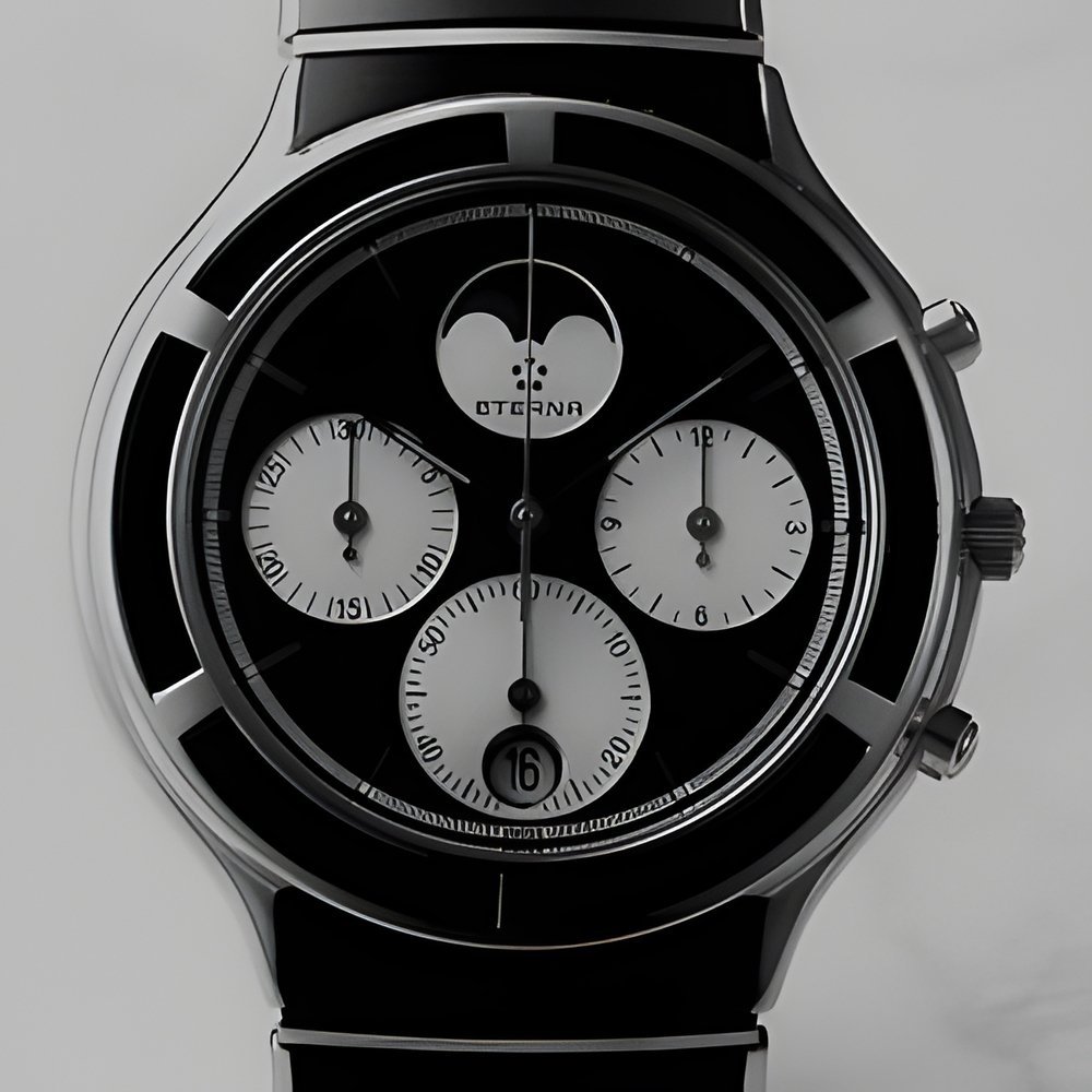 Representing Eterna’s most impressive entry in the world of high-performance quartz chronographs, this model includes two independent step motors, one for time functions, the other for chronograph operations. “Galaxis Airforce” is made of 18K yellow gold enhanced with metallized cobalt-blue sapphire. Its ergonomically perfect construction hugs the wrist with the utmost comfort. Permanent small seconds hand, 30-minute and 12-hour totalizers, date calendar and moon phases. Registered model. (ETERNA “Galaxis Airforce”)