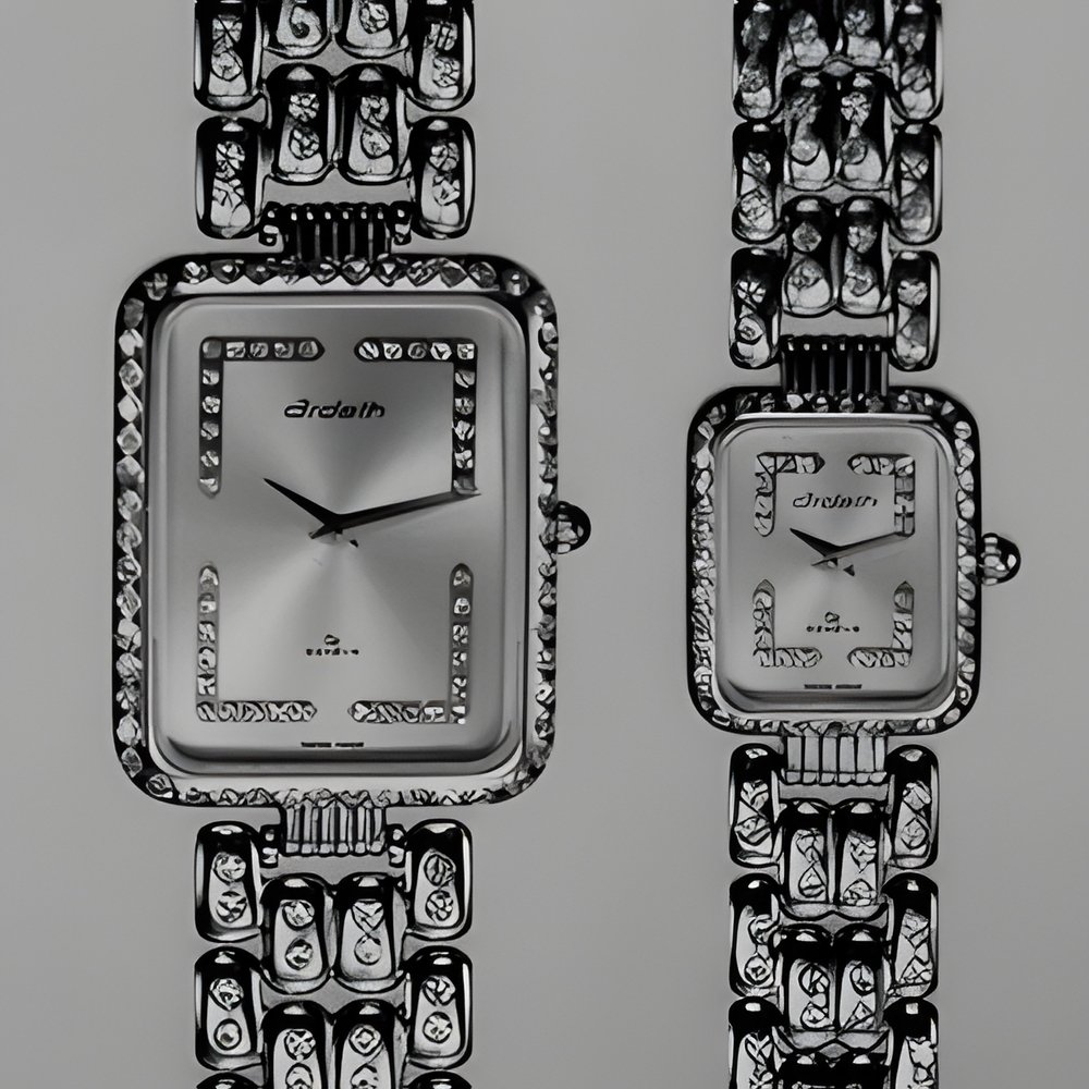 Called “Crystal Gate”, these water-resistant models from Ardath display rectangular cases with rounded corners. Cases, bracelets and even dials are adorned with decorative crystals. Quartz movements. (ARDAN “Crystal Gate”)