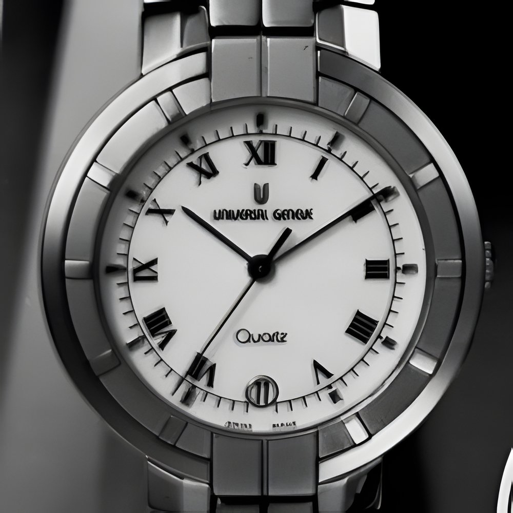 Displaying a full measure of sporty elegance, with Roman numerals and a “sculptured” bracelet, these Universal Genève models are in stainless steel or a choice of two-tone or integrally gold-toned finish. Quartz movement with centre seconds hand and sapphire crystal. Cases are water-resistant, fitted with an integrated bracelet with expanding, invisible clasp. (UNIVERSAL GENEVE “Corporate”)