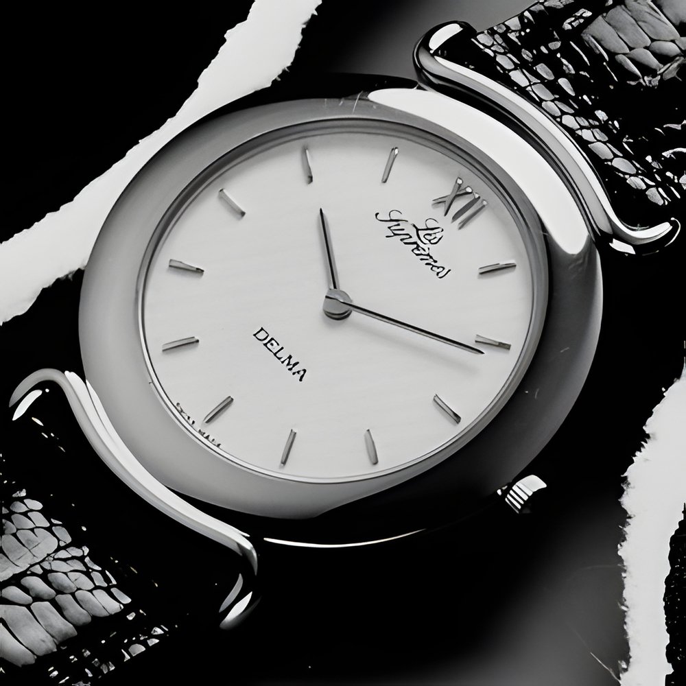 Delma is launching a new collection called “Venice” in Basle this year. It features models for both men and women, fitted with ETA quartz movements inside water-resistant black zirconium or 10-micron goidpiated cases equipped with a saphire crystal. Straps are made of genuine tejou lizard skin. (DELMA “Venice”)