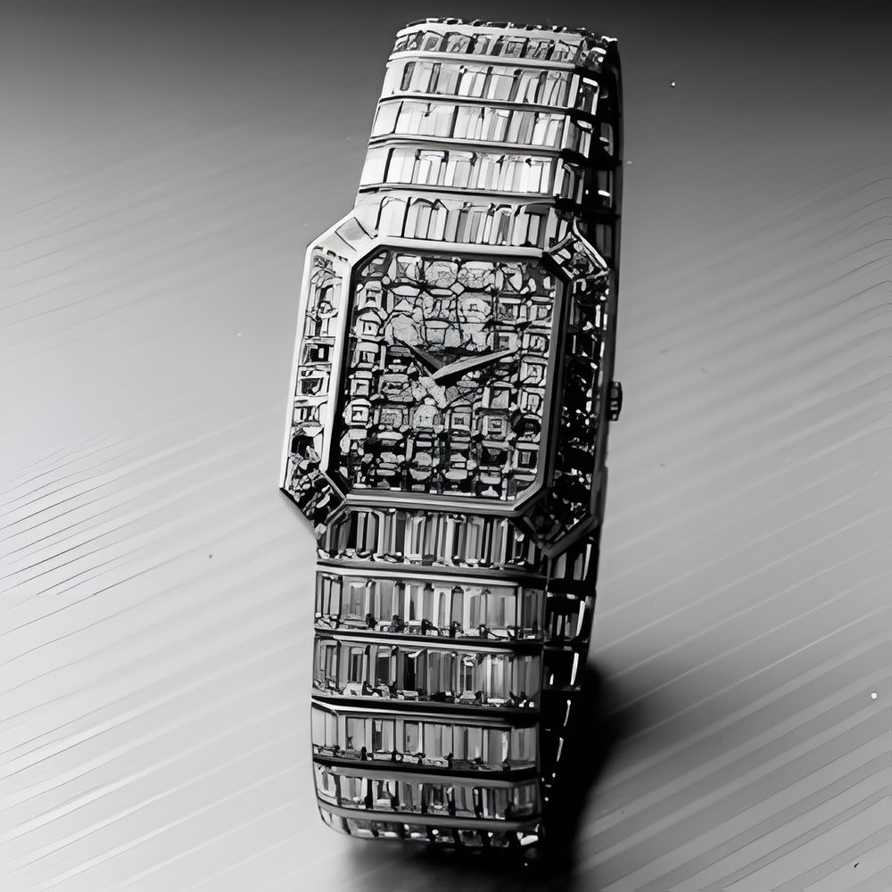 “Kalla Pagode Lord” - a supremely sumptuous jewellery watch in 18K white gold from Vacheron Constantin’s “Absolues” collection. Its case, bracelet and dial are set with 62.43 carats of baguette diamonds. Ultra-thin mechanical movement. (VACHERON CONSTANTIN “Kalla Pagode Lord”)