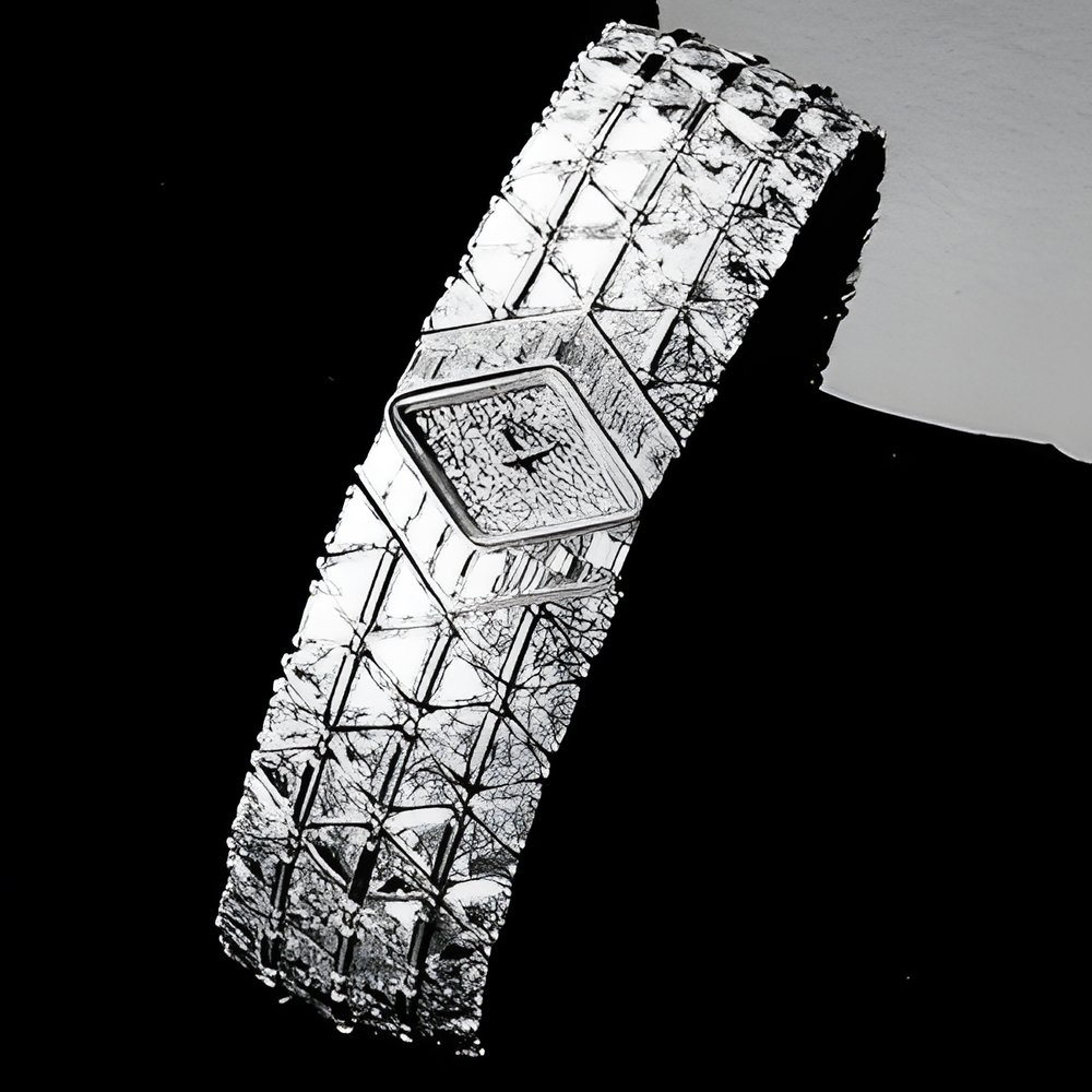Only 50 of this prestigious jewellery watch, enhanced with 41 carats of triangle-cut diamonds, will ever be made. (DELANEAU)