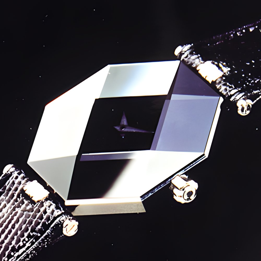 Century’s sapphire-case watch line now includes a new style called “Empire”. Four stripes divide eight-sided cases into rectangles and triangles, with a square at centre. Facetted by hand, each sapphire case is trimmed in 18K yellow gold or 950 platinum and enhanced with diamonds or coloured gemstones. (CENTURY “Empire”)