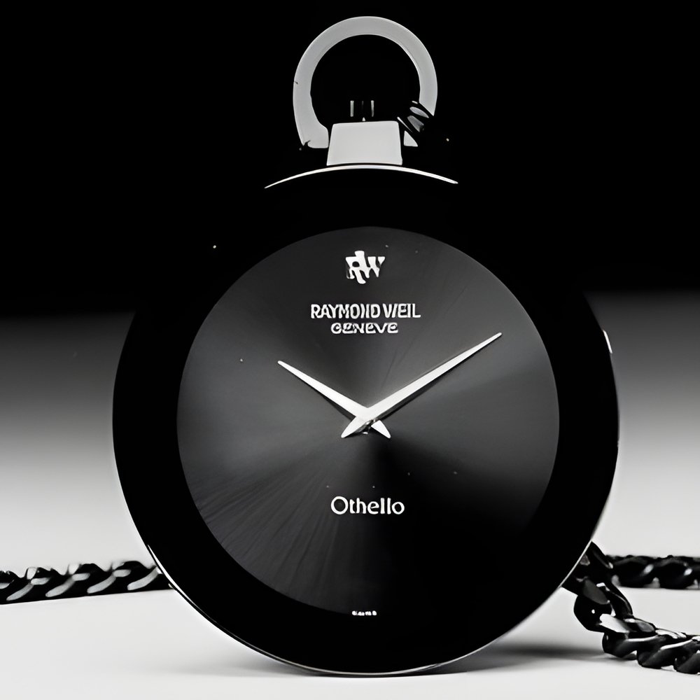 The pocket watch that now joins Raymond Weil’s “Othello” collection is notable for its sophisticated technical features : black titanium case ( 43.5 mm) water-resistant to 30 m and extremely heat-resistant yet extra-thin crystal. Top-of-the-line quartz movement only 0.98 mm thick. With black chain. (RAYMOND WEIL “Othello”)