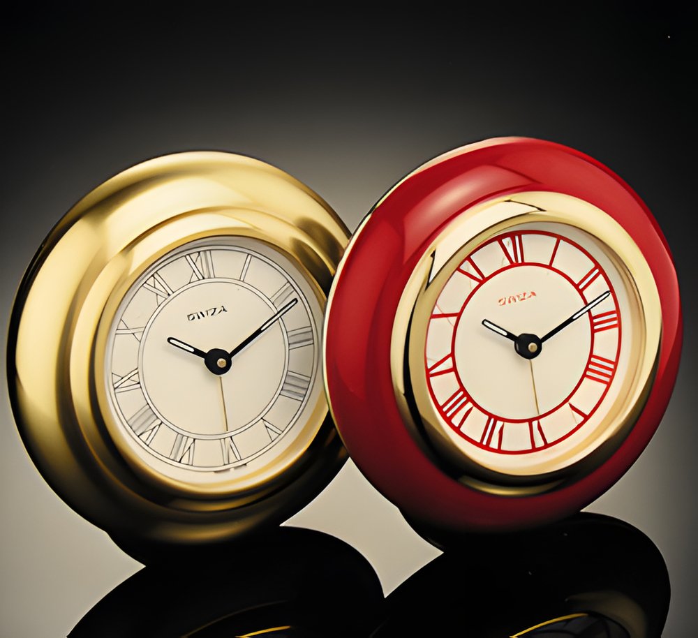 Swiza’s new “Les Galets” collection features a range of superbly rounded alarm clocks, all with solid brass case. They provide a wide choice of finishes ranging from polished natural brass to red and black or white varnish to lapis-lazuli, malachite or titanium. Swiza Swiss Made quartz movement with alarm function. Ø : 84 mm (3 1/3“). (SWIZA”Les Galets")