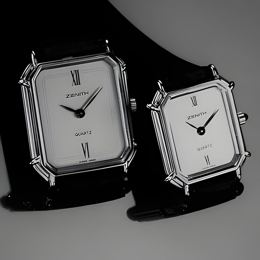 Two exclusive designs from Zenith’s “Silhouette” collection. Extra-thin quartz movements, yellow and white goldplated cases, scratch-resistant sapphire crystals. (ZENITH-MOVADO “Silhouette”)