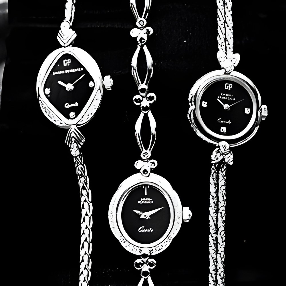 From the new Girard-Perregaux jewellery collection come these three extremely refined designs in 18K yellow gold with cases or bracelet links set with diamonds and chain bracelets or oval-links decorated with flush-set rubies and sapphires. Compact, extra-thin quartz movements. (GIRARD-PERREGAUX)