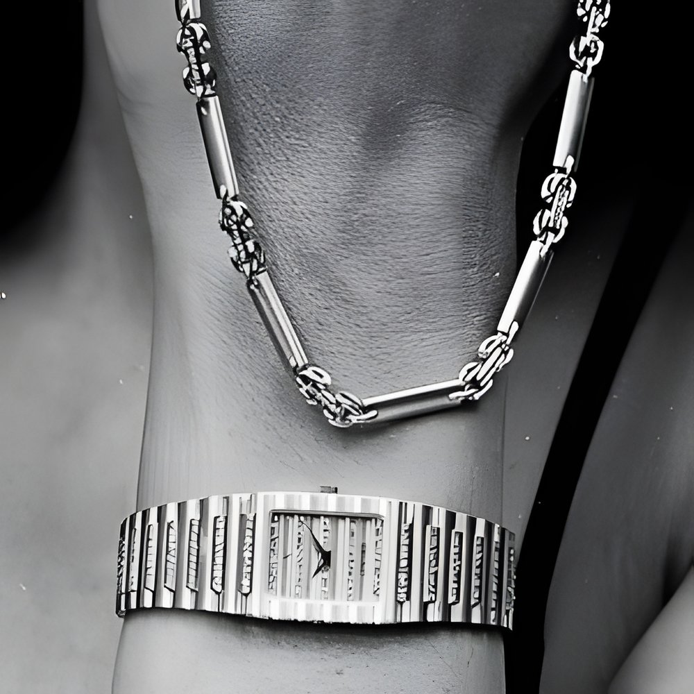 In Basle, Concord unveils a jewellery suite designed around the “Centurion” model and comprising a watch, a ring and a necklace. In white and yellow 18K gold with diamonds. Displaying absolutely “integral” styling, the water-resistant watch contains an extra-thin quartz movement. (CONCORD “Centurion”)