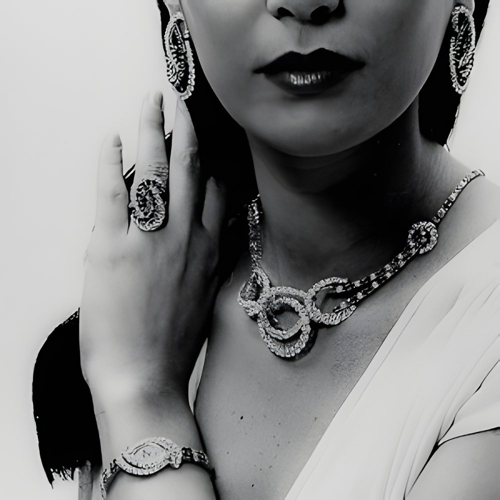A dazzling demonstration of the jeweller’s art, this set, mounted on 18K yellow gold, displays over 60 carats of diamonds, rubies and emeralds. Only 20 of them have been produced. (DELANEAU)