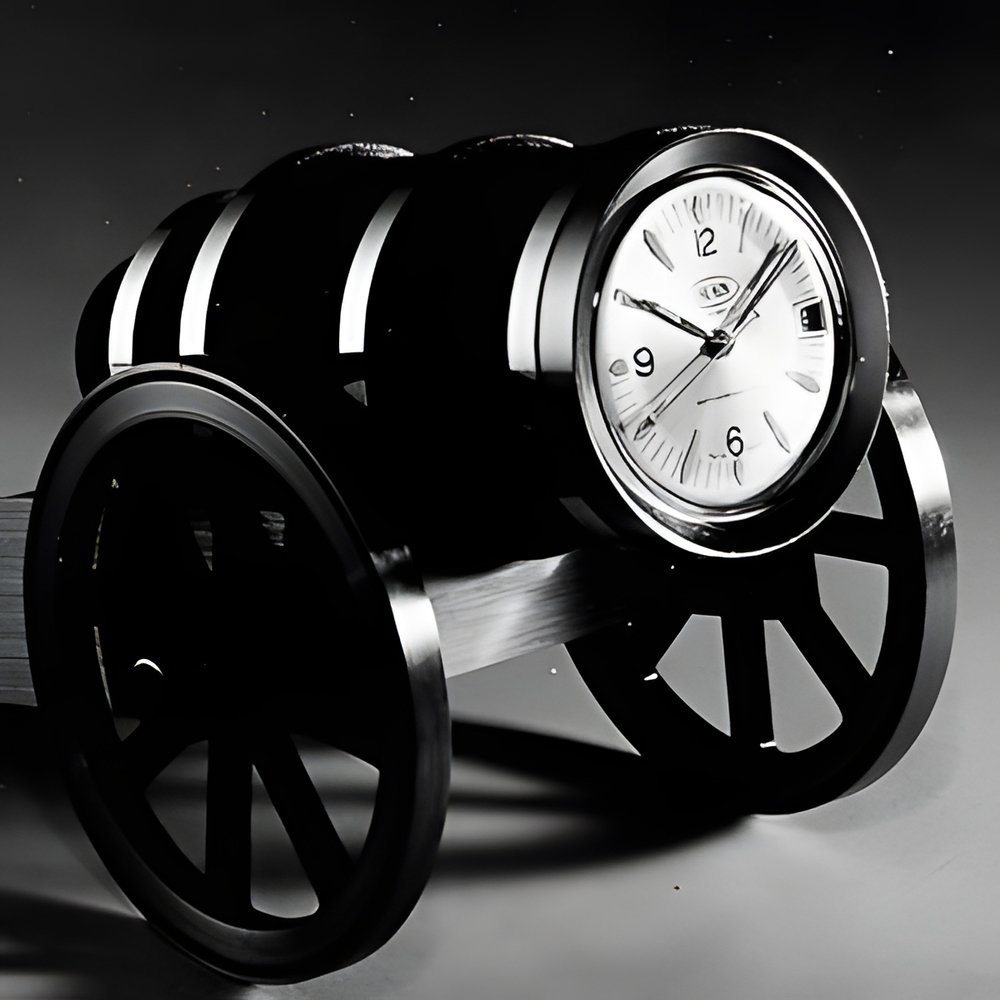 A most original way of showing the time the watch dial is lodged directly at the end of the gun barrel. (OBERON)