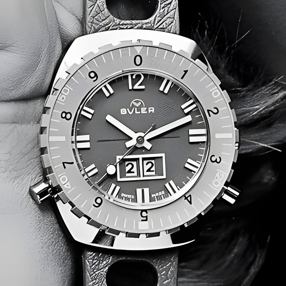 Designed specifically for golf players, this economical watch is equipped with a totaliser actioned by the pushpieces at the bottom of the case. With turning bezel for measuring the duration of the game. (BULER)