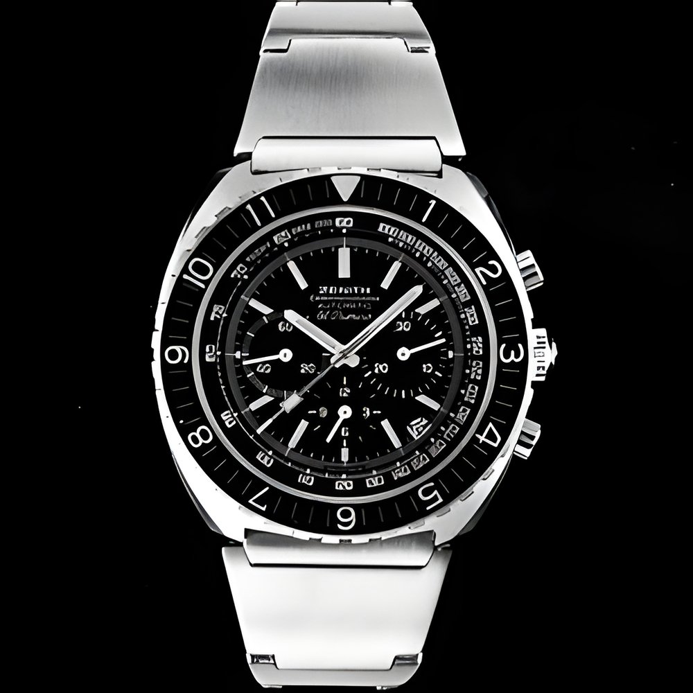 specially for high speeds. All surfaces have been glareproofed. The case is guaranteed water-resistant to 0 atmospheres (a depth of 300 metres) Hour, minute and seconds registers. With calendar. (ZENITH “El Primero-Aviateur”)