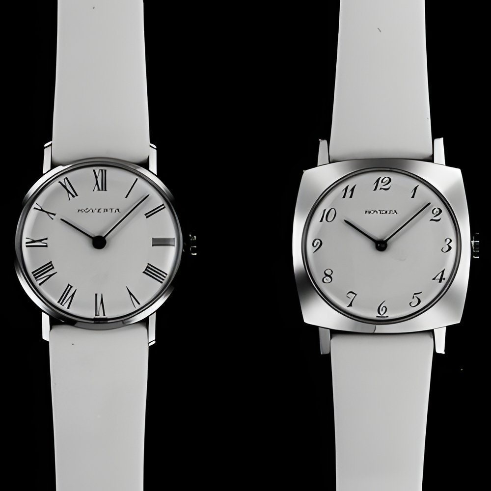 To models with trim and simple lines available with either Roman or Breguet numerals on the silvered or coloured dial Goldplated or chrome-plated case (HOVERTA)