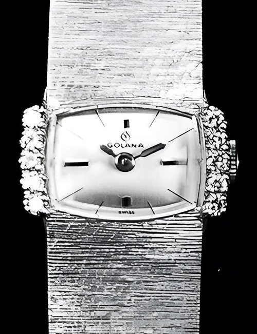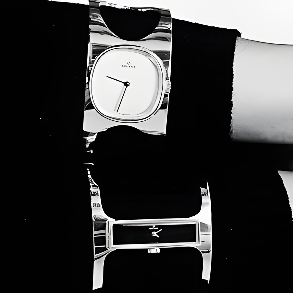 Silver is very popular with today’s younger generations. These two models typify yet another trend in watch styling: rigid bracelets, today increasingly open-worked. Generously proportioned dials, round at left, rectangular at right. (GOLANA)