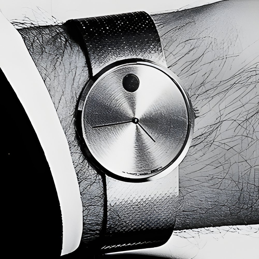 Classical in shape and modern by its extremely restrained styling, this dress watch is in white gold : bracelet, case and dial. The latter is devoid of figures, only one large dot to mark midnight. Very thin casen (ZENITH TIME “Movado”)