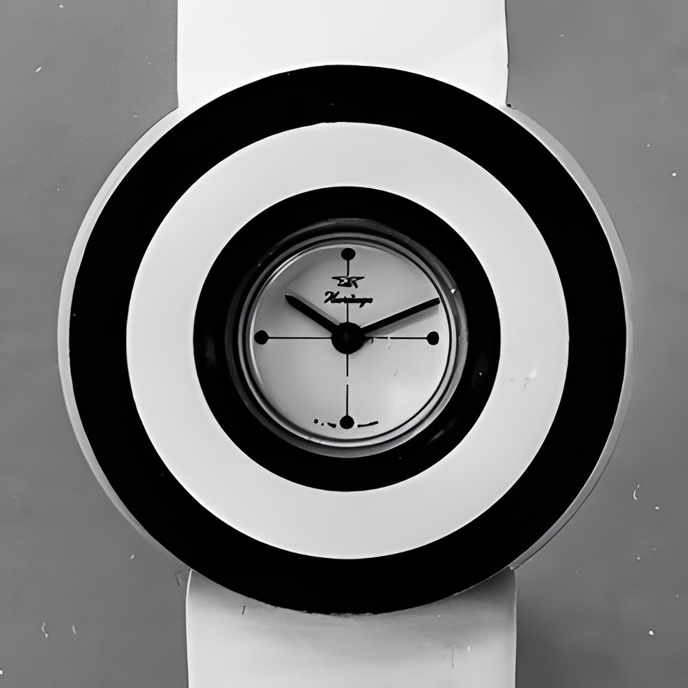 Daring dimensions and contrasting colours everything about this boldly styled economical model suggests that it as designed for the youth market. On the case, two concentric rings - one imitation wood, the other dazzlingly white - demonstrate the versatility of synthetic materials. (FEREX)