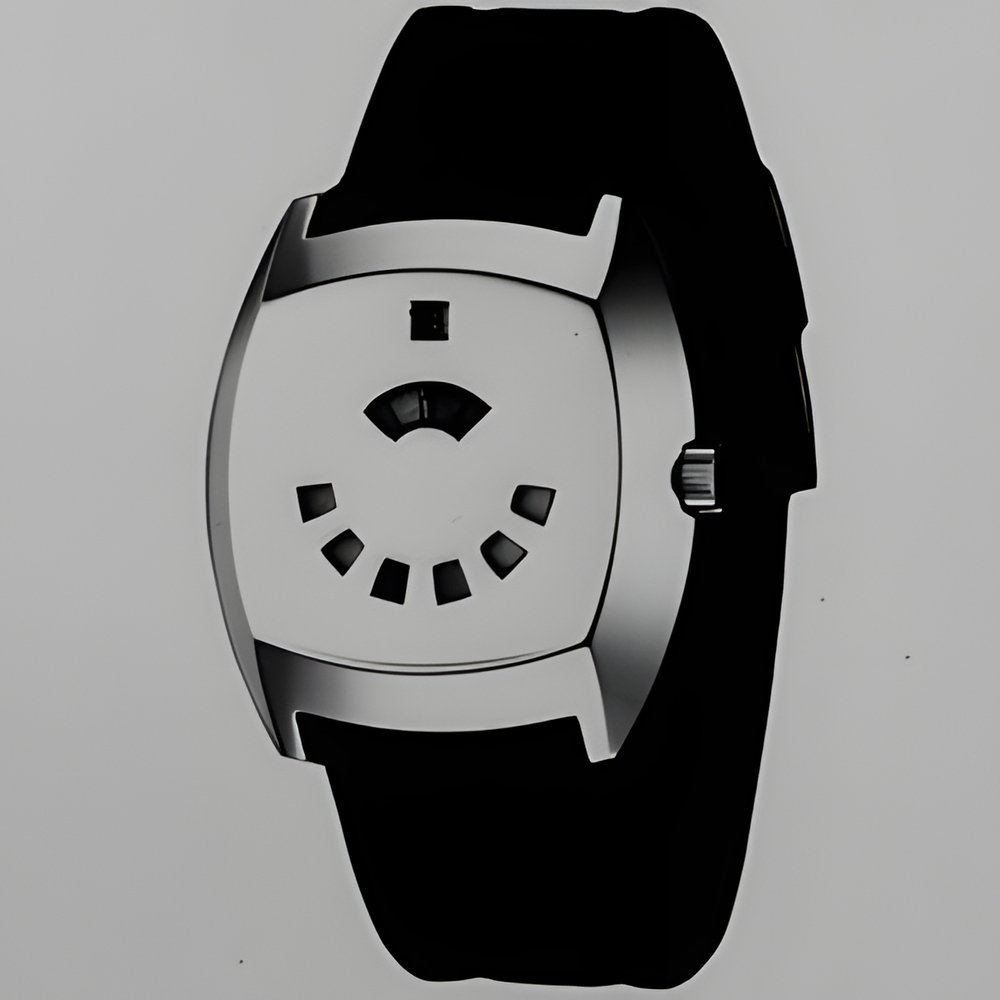 A new way to read the time. Based on the binary system, this watch provides both an evaluation of elapsed time and the right time at one single glance a coloured dot in one of the 6 lower apertures gives the hours, the minutes appear in the centre aperture with the date visible in the one above What ’ s more, there is not longer any risk of breaking the crystal (SICURA “Pro Domo”)