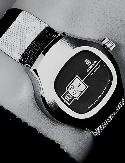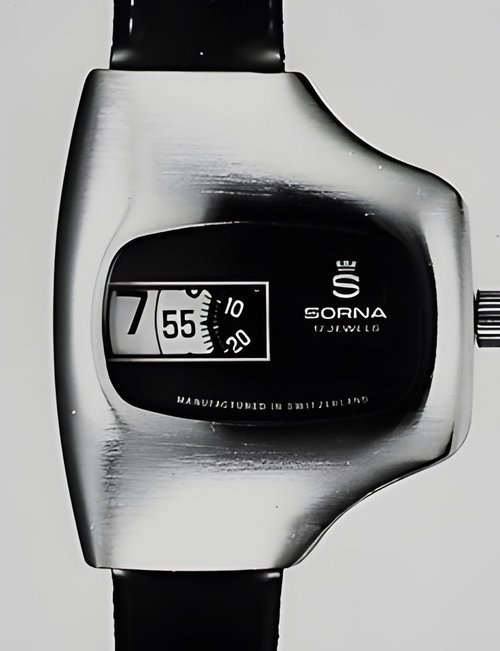 Coming on the market this year are the first compact mechanical digital watches. One of the new items at the 1973 Basle Fair, they are ideal for feminine wrists Chromed case and coloured dial Economical model. (SORNA)