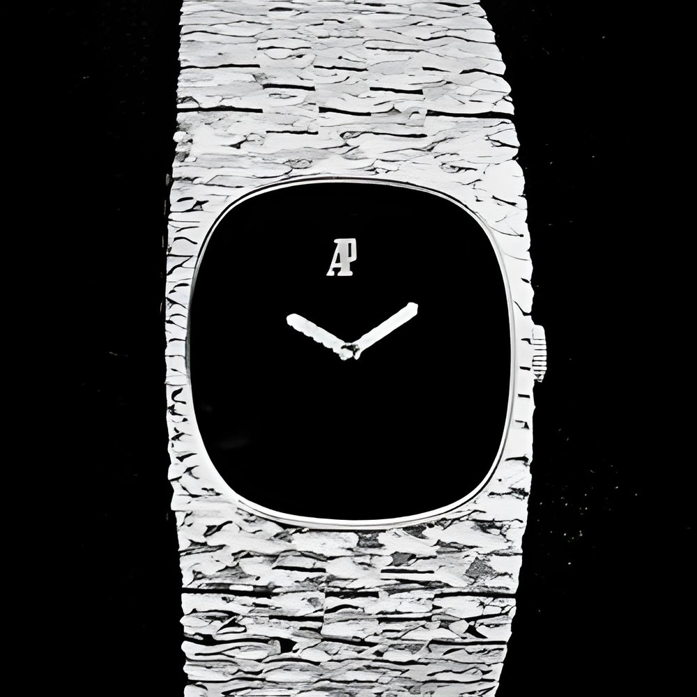 A prestigious dress watch that strikes a perfect balance between modern styling and classical understatement. Gracefully chased 18 carat yellow gold bracelet framing a night-blue dial without markers The hands are set with tiny diamonds. (AUDEMARS PIGUET)