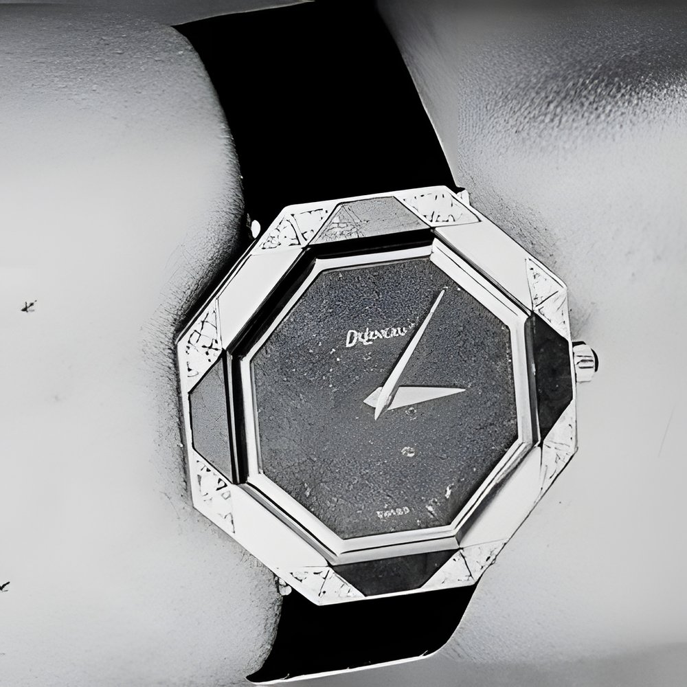 Coloured gemstones are in fashion, as shown by this very thin model with lapis lazuli and turquoises as well as brilliants. The case is made of 18 carats yellow gold. The charm of exclusive handworked artistry. (DELANEAU)