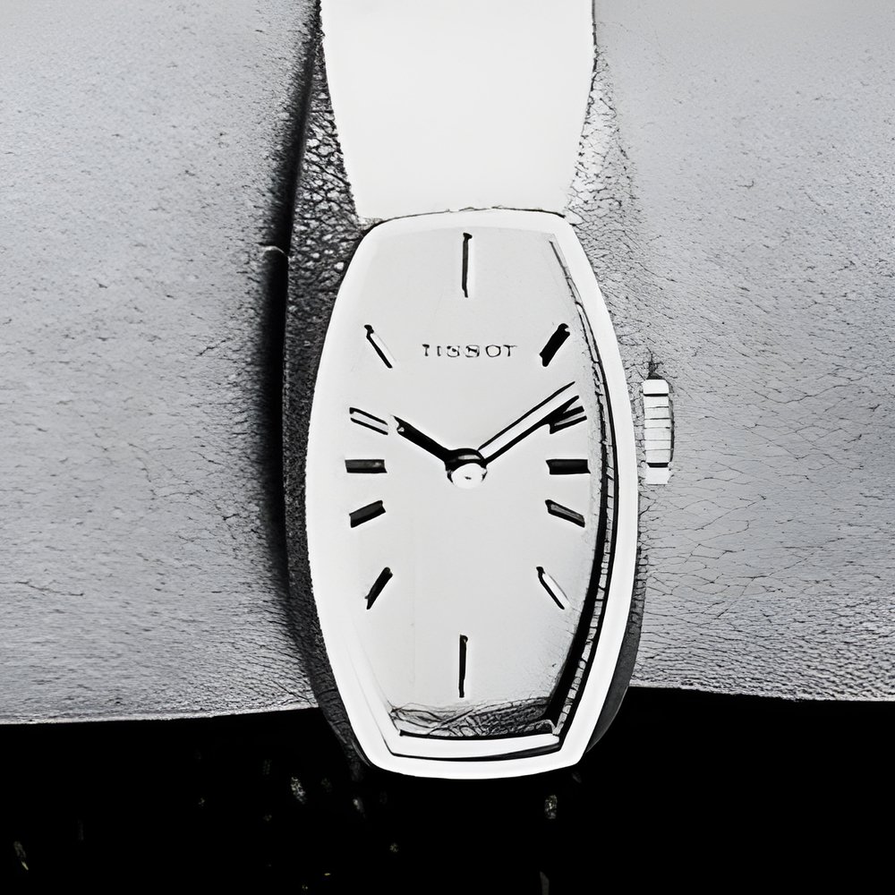 Attractively modern and elegant, in keeping with the canons of contemporary styling that stress the integration of case and bracelet, this 18 carat yellow gold model fits snugly on the wrist thanks to its tapered lines. What is more, its high-frequency (28,800 v.,p.h.) movement provides excellent rate stability. (TISSOT “City Line”)
