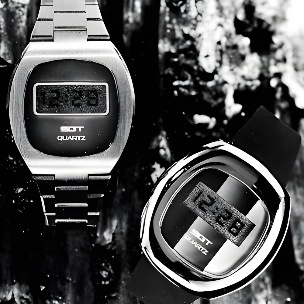 SGT, Société des Garde-Temps SA, the company that groups the Avia, Silvana, Titus, Sandoz, Invicta, Helvetia, Tell, Waltham and, more recently, the Elgin watch companies, introduce their new generation of quartz watches with liquid crystal time display (LCD), using the new “field effect” system with sharper contrasts for improved readability. (SGT , Société des Garde-Temps S.A. La Chaux-de-Fonds)