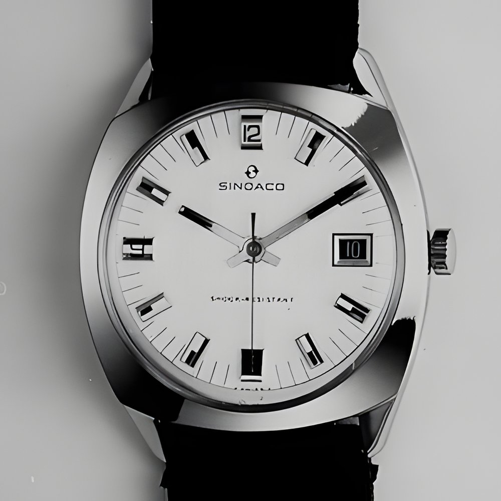 Neat functional lines for a tonwesr watch in the “economical” class. With centre (sweep) second hand and calendar. (SINDACO)