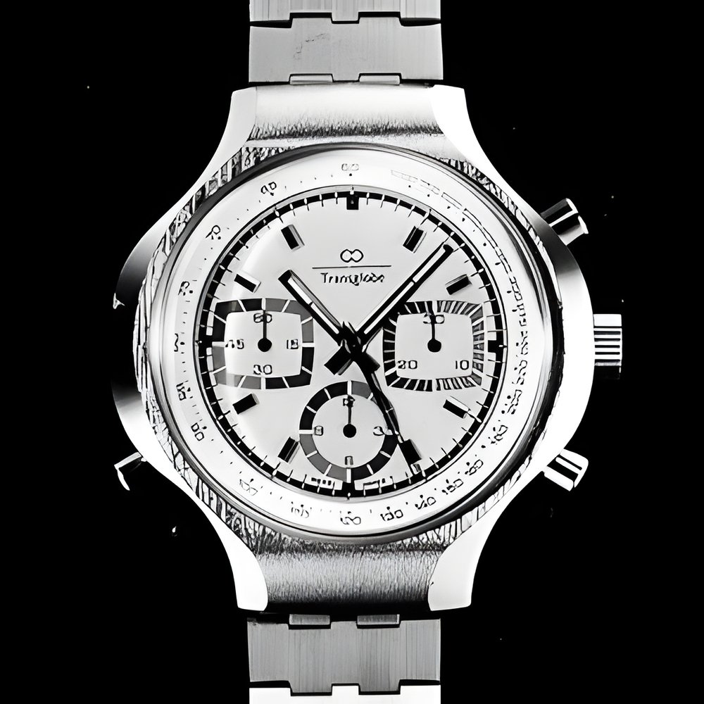 A new type of chronograph, fitted with two independent mechanisms with which the wearer can a) measure short times up to 60 seconds by the centre hand and b) simultaneously record times of up to 12 hours in seconds, minutes and hours by means of the three registers. All this in an “economical” model. (GROEFLIN - TRANSGLOBE)