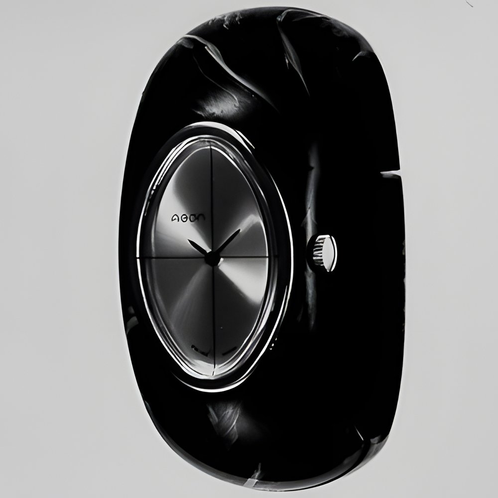 Slave bracelets are a definite favourite ; they are worn loose, often high on the rist. These “economical” models made of synthetic have a tortoise shell, ivory or jade finish. Elliptical dial with gilt frame. (AGON)