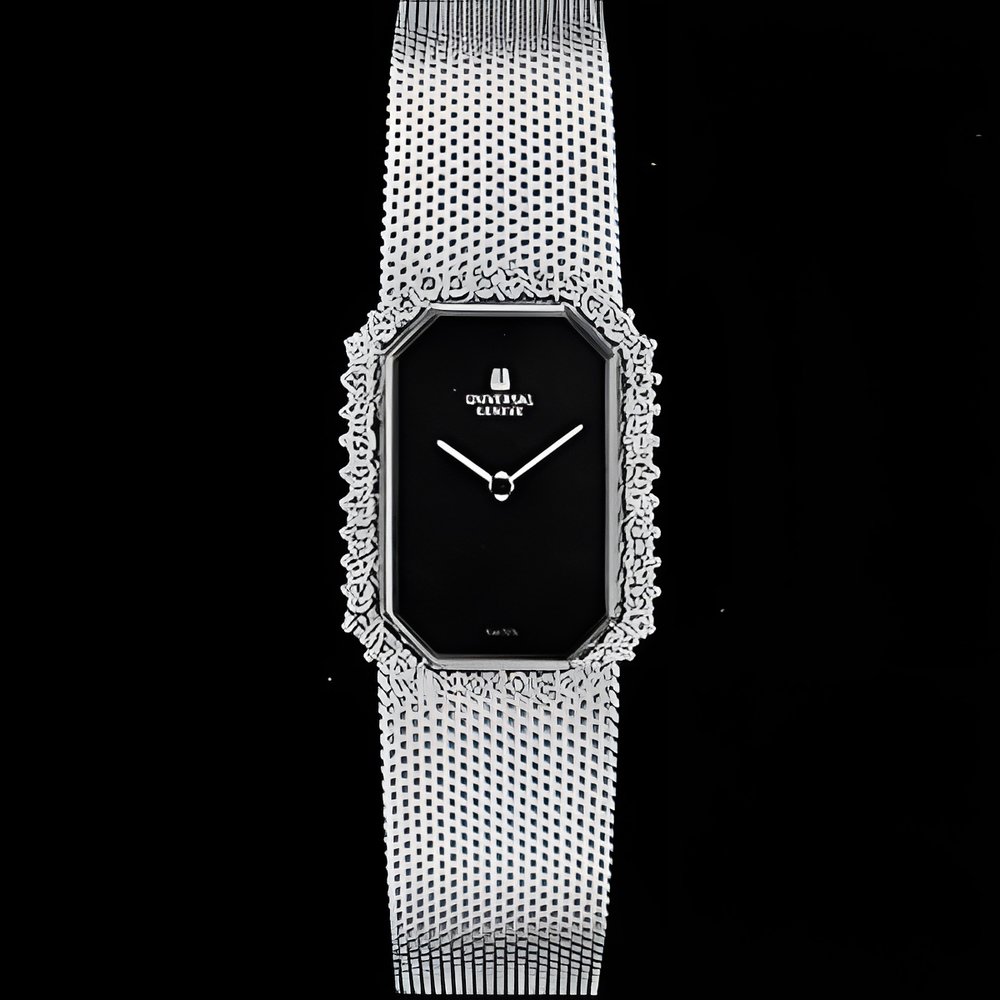 This jewellery watch in 18 carat grey gold, with diamonds in a claw