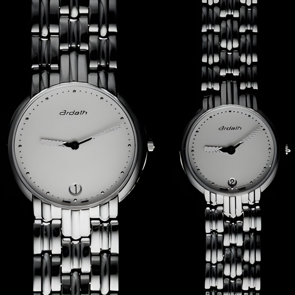 In Basle this year, Ardath is introducing its “Toledo” models, so called by reason of their multifacetted “Swords of Toledo” type watch hands whose sheen is reflected on the dial’s white enamel finish. “Toledo” models feature elaborately worked, goldplated bracelets for men and for women. Water-resistant cases with sapphire crystal house ETA Swiss Quartz movements. (ARDATH “Toledo”)