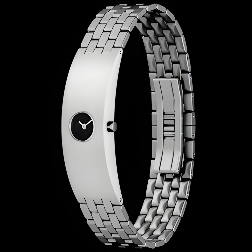 “Big Steel” line from Milus: “Time plotted in a flawless stainless steel arc”. A new range designed by Milus and based on a project by Paul Junod Milus 1991. (MILUS, Paul Junod SA)
