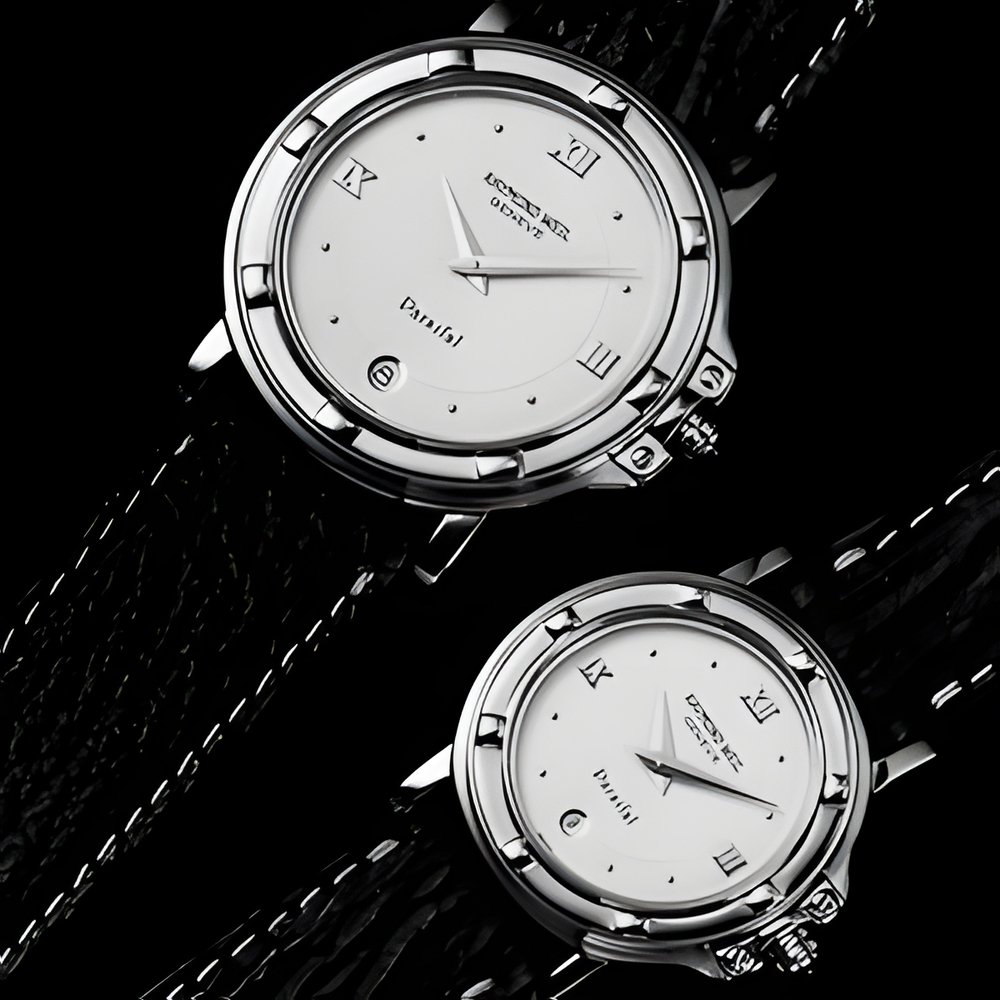 Presenting Raymond Weil’s new “Parsifal” models with genuine blue, green or black sharkskin strap. Their water-resistant cases are in steel and 18K gold or all-steel, with sapphire crystal. A small gold or steel plate protects the setting crown, itself set with a blue cabochon-cut stone. Quartz movements, with calendar. (RAYMOND WEIL “Parsifal”)