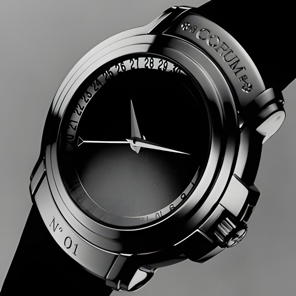 The dial of this outstanding model is carved in rock from the planet Mars. Fragments of Martian rock, projected into space by the impact of a huge meteorite, were captured by the earth’s gravity and fell on our planet in 1962, in the form of meteorites. The proof that they came from Mars was provided by analyses of the surface of Mars carried out by the Viking probe in 1976. These Martian meteorites come into the extremely rare group of “SNC meteorites” which consists of only about a dozen specimens. Limited numbered series of 25 watches, in platinum and red gold, with certificate of origin. (CORUM “Météorite-Mars”)