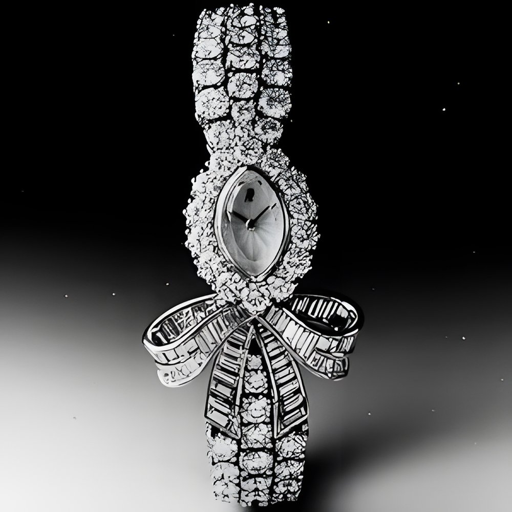 With its diamond-set gold petals, this one-of-a-kind flower-like creation by Audemars Piguet opens on a crystal cut from a piece of white beryl. It is set with 130 round and 58 baguette-cut diamonds totalling 23.91 carats, set on a yellow gold frame. (AUDEMARS PIGUET)