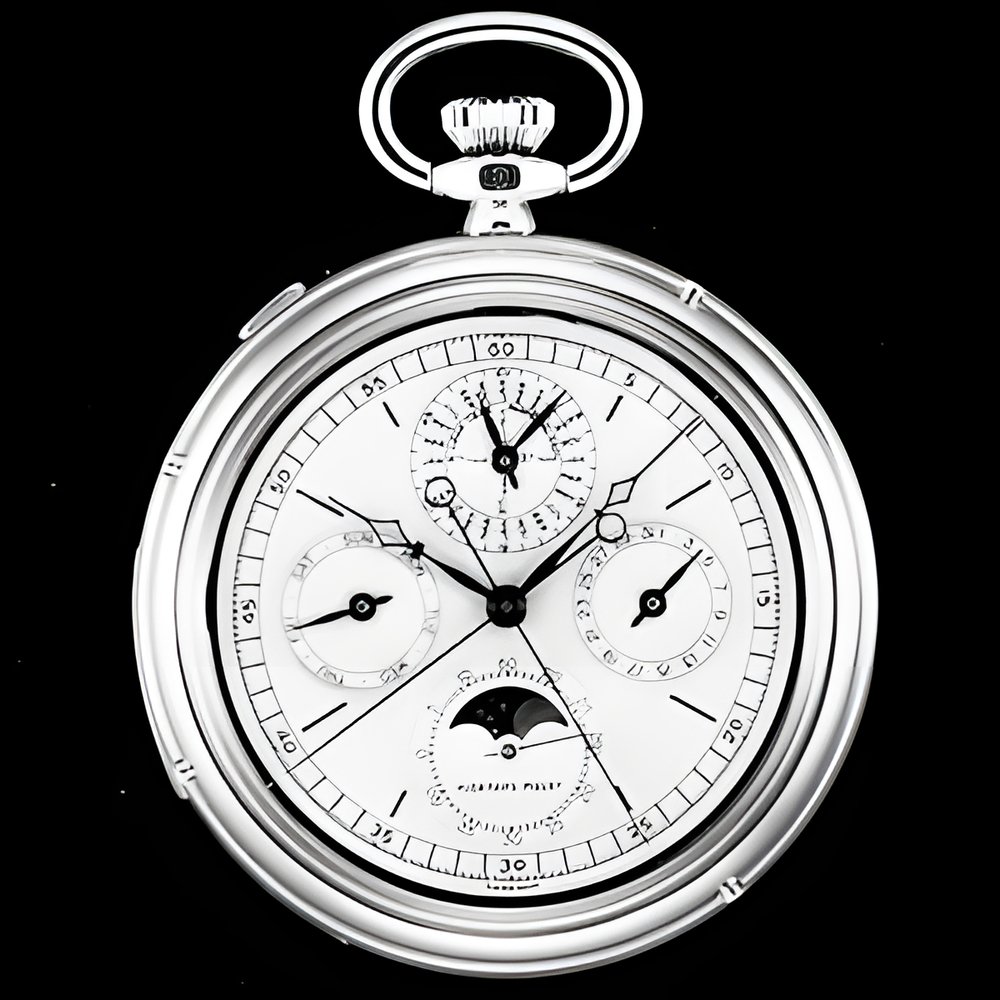 Heir to the classic craftsmanship which for more than a century has distinguished Audemars Piguet timepieces, this “Grande Complication” model is made in truly limited numbers : precisely two a year... It is listed in the Guinness Book of Records as the world’s costliest watch. Its production and assembly demand immense knowhow and uncanny ability : 416 parts in all, providing no less than twelve distinct functions - hours, minutes and seconds; a perpetual calendar showing the day, date, month and moon phases including leap years until the year 2100; a chronograph to one-fifth of a second, with flyback hand; a repeater strike for hours, quarters and minutes. (AUDEMARS PIGUET)