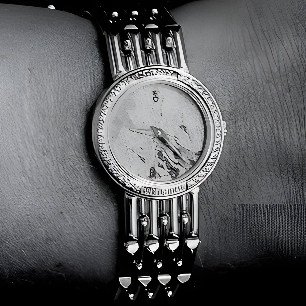 Corum’s “Meteorite” watch comprises a dial cut from material of extraterrestrial origin : a slab of the famed Arizona crater meteorite. Case in solid 18K gold, bezel set with 36 diamonds. The bracelet is composed of articulated semi-circular segments. (CORUM)